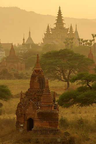Географическое положение Бирмы, непосредственно граничащей с северовосточной Индией и южным Китаем и находящейся на главном пути, соединяющем Индию с Юго-Восточной Азией — Камбоджей, Таиландом, Индонезией, — обусловило тесную связь с культурами этих стран, ощущаемую в искусстве Бирмы. Еще на рубеже нашей эры и позднее индийские торговцы и буддийские проповедники расселялись по бирманской территории. Основными народностями, населявшими территорию Бирмы в первом тысячелетии нашей эры, были племена ион на юге страны (столицей их был город Татон) и на севере — племена тибето-бирманцев, приток которых с северо-запада возрос в 7—8 вв. Столицей последних до середины 8 в. был Старый Пром (Проме) на реке Иравади. Несмотря на различное этническое происхождение, обе эти народности испытали сильное влияние индийской культуры. Помимо бронзовых изделий несомненно индийского происхождения, обнаруженных при раскопках, это влияние отчетливо видно в тех памятниках искусства, которые дошли до нас в развалинах древних городов, и связано в первую очередь с преемственностью форм буддийских культовых сооружений Бирмы от буддийского зодчества Индии первых веков нашей эры.