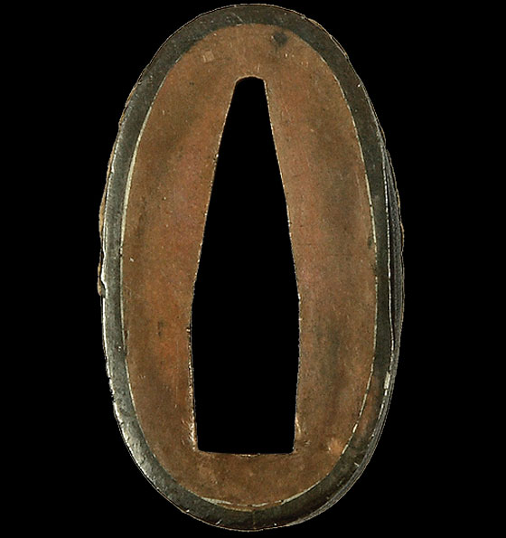Сплав сякудо, патинирование, рельефная инкрустация золотом, резьба.